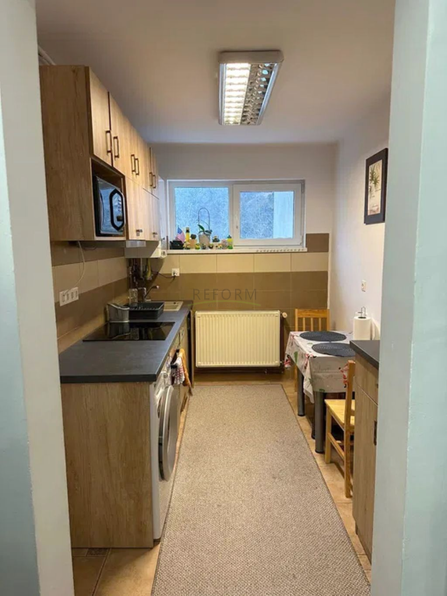 Compartimentarea acestuia este: Hol spațios, bucătărie, sufragerie cu acces în balcon, dormitor, baie cu cadă și geam. Dispune de finisaje moderne, geamuri termopan și centrală termică. Se vinde mobilat și utilat (TV, mașină de spălat vase, mașină de spălat, frigider). În apropierea blocului sunt 2 grădinițe, una privată și una publică, bănci, magazine, Profi și farmacii se găsesc la 3 minute.