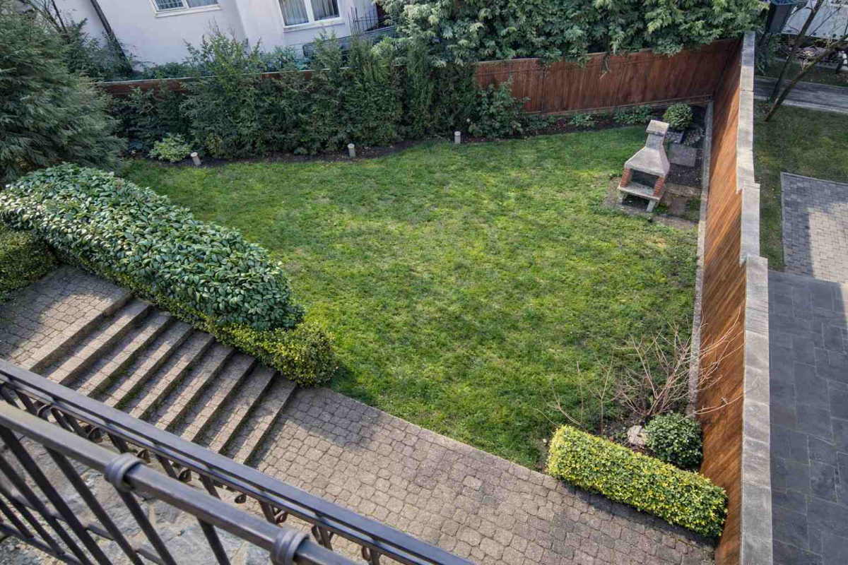 Teren de 489 mp, curte proprie, grădină în spate, spațiu verde matur – intimitate și liniște într-o zonă exclusivă de case.