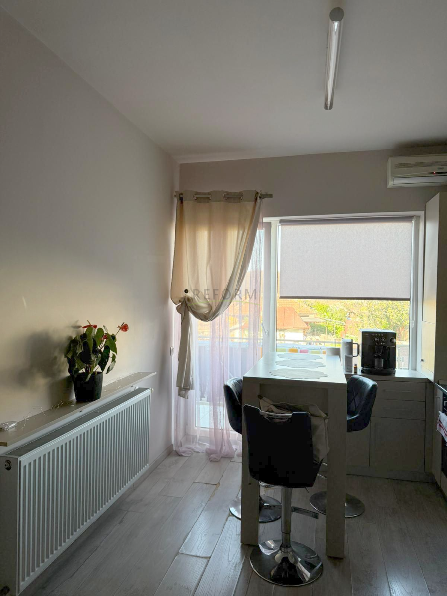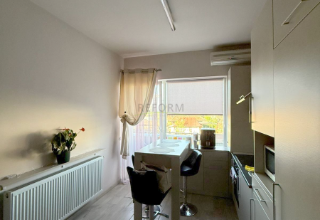 Apartamentul are 40 mp, este modern renovat și mobilat cu bun gust, fiind situat la etajul 2 al unui bloc nou cu 4 etaje. Imobilul este compus din living, bucătărie, un dormitor și o baie. Accesul pe balcon se face din bucătărie.