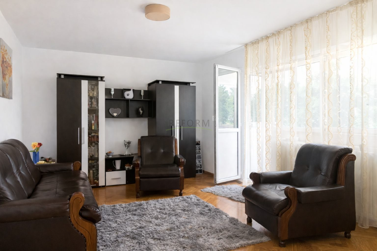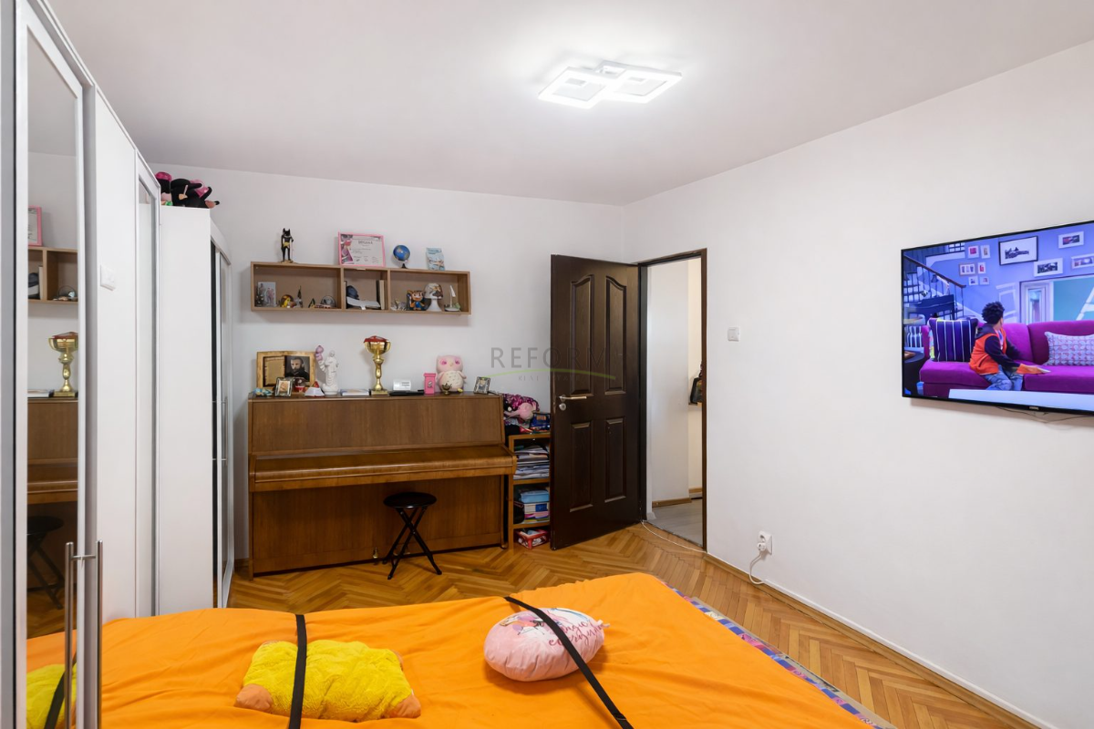 A lakás egy 4 emeletes tömbház 3. emeletén található, teljesen felújított, beleértve a villanyvezetékeket is, központi fűtéssel, termopán ablakokkal, modern kivitelezésekkel rendelkezik. Beosztása: konyha, nappali kijárattal az erkélyre, ahol 2 tárolóhelyiség található, előszoba, 2 fürdőszoba, egy kádas és egy zuhanyzós fürdőszoba, 3 szoba, valamint saját parkolóhelyel is rendelkezik. A lakás bútorozottan, háztartási gépekkel felszerelve eladó.