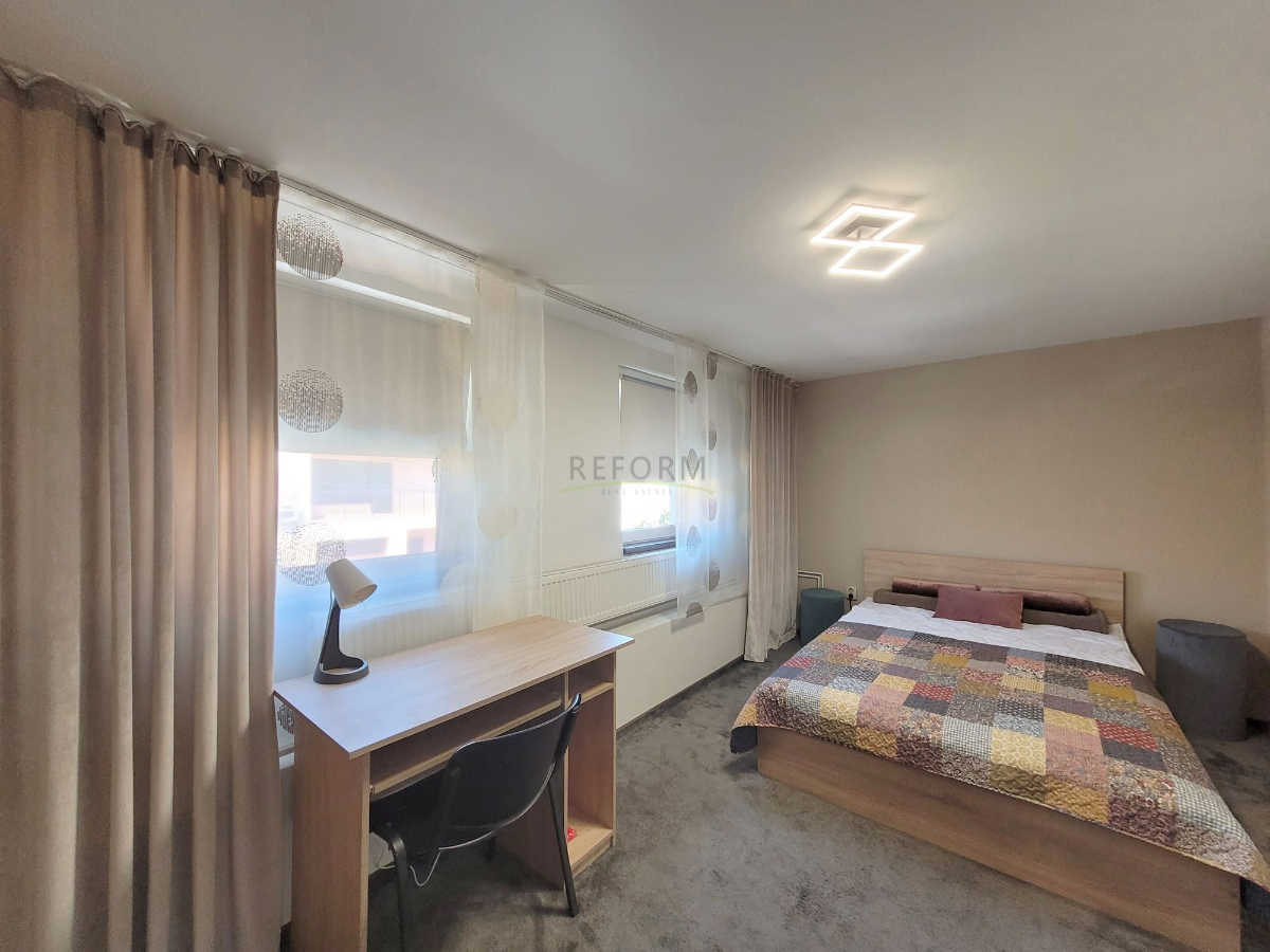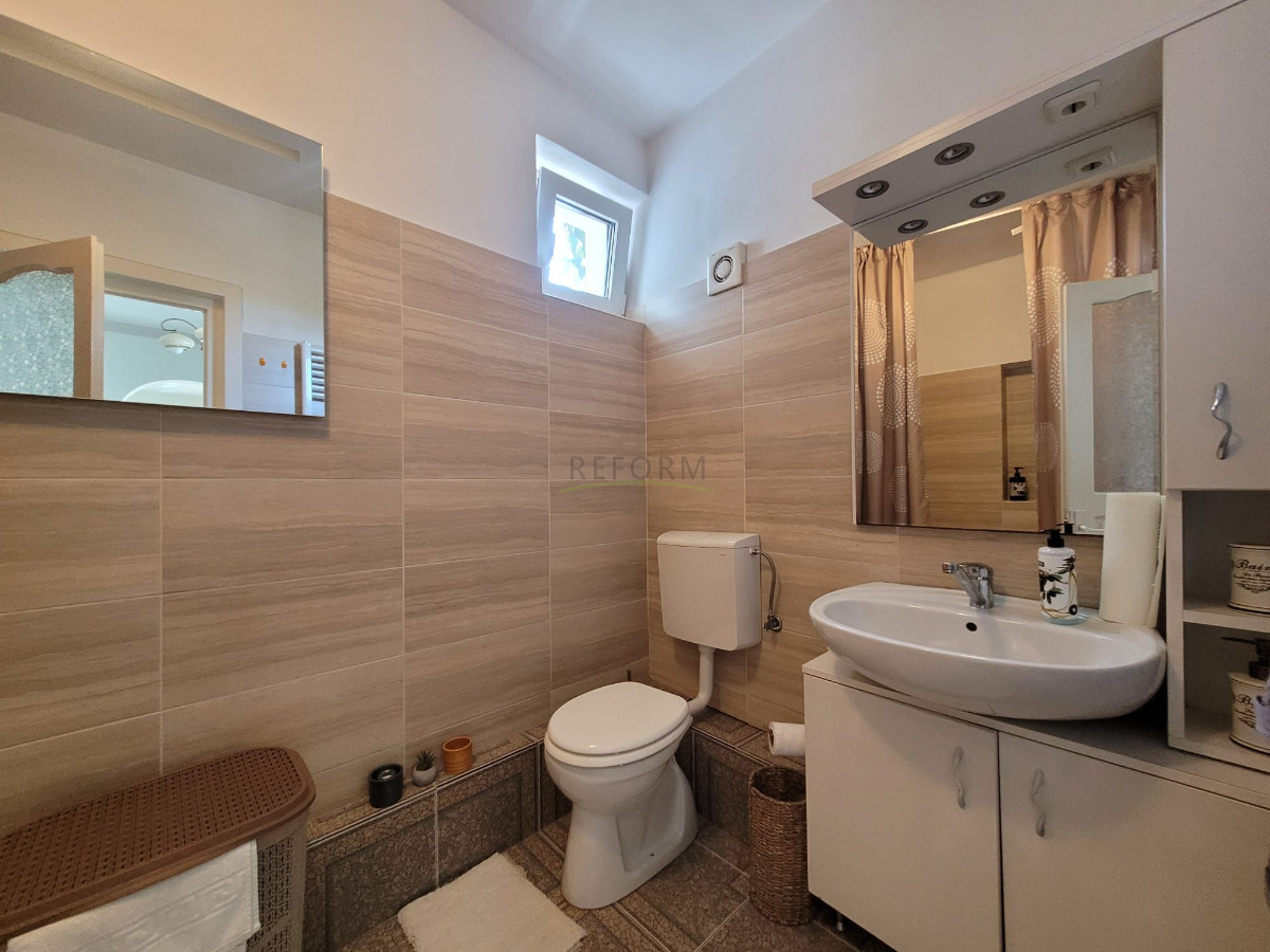 Az ingatlan két szintes, a földszinten egy előszoba, egy fürdőszoba, egy tágas nappali, egy teljesen berendezett és felszerelt konyha, valamint egy ebédlő található; az emeleten 2 hálószoba, egy ablakos fürdőszoba és egy tárolóhelység is helyet kapott, valamint egy tágas terasz is rendelkezésre áll. Az udvarban kerti bútorok kerültek elhelyezésre, a kinti kikapcsolódáshoz szükséges kényelmet biztosítva.