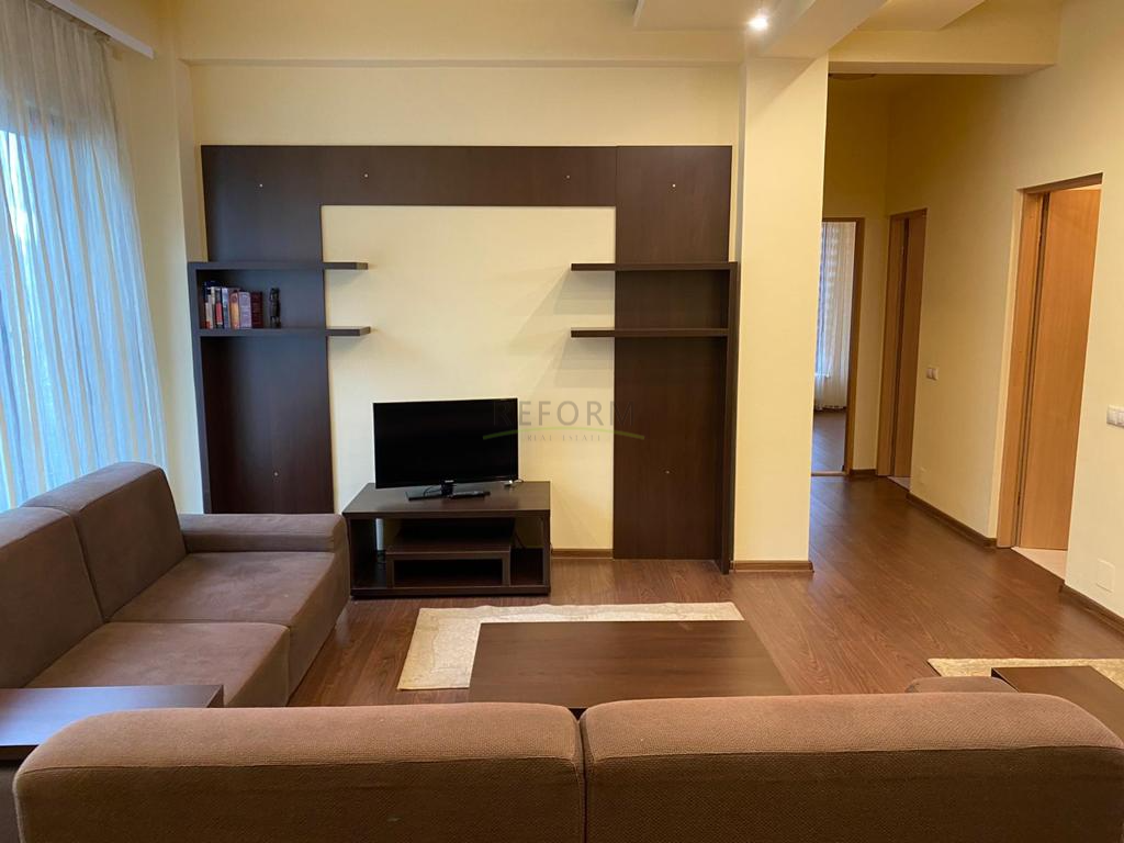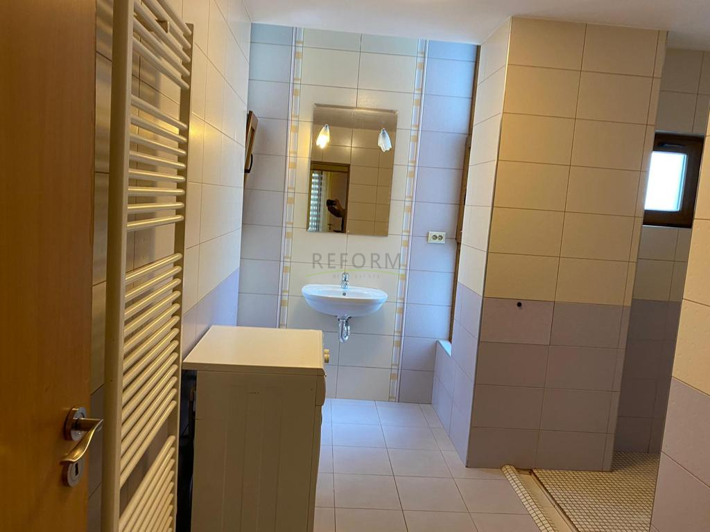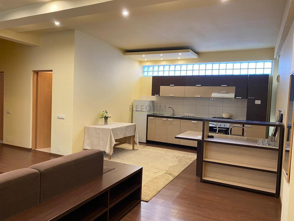 A lakás hasznos területe 100 négyzetméter, és egy három emeletes épület első emeletén található. Az ingatlannak a következő a beosztása: nappali konyhával, két hálószoba, két fürdőszoba és egy erkély. A lakás teljesen berendezett és felszerelt, saját központi fűtéssel rendelkezik. A környék nagyon csendes, a közelben sok zöldterületet, üzletet találunk.