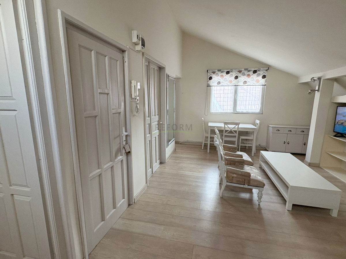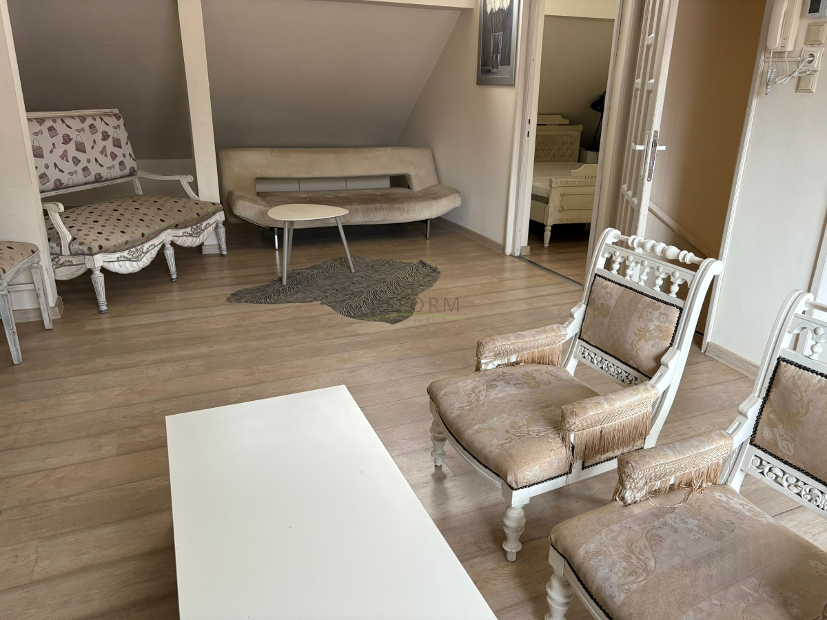 A kiváló konfortú 50 négyzetméteres manzárd lakás saját bejárattal rendelkezik. Egy hálószobára, tágas konyhával egybenyiló nappalira, valamint kádas fürdőszobára oszlik.Modernül felszerel és berendezett. A bérleti díj 550 euró.