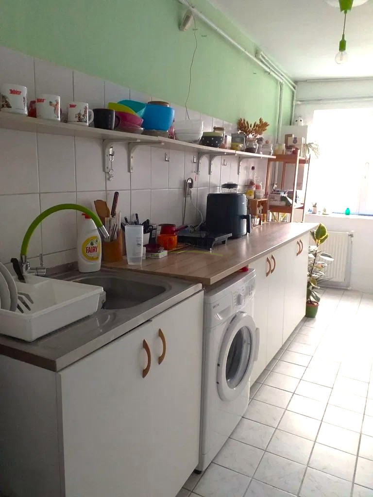 Felosztása: előszoba, konyha kamrával, 2 különálló szoba, mindegyikhez erkely tartozik és fürdőszoba.