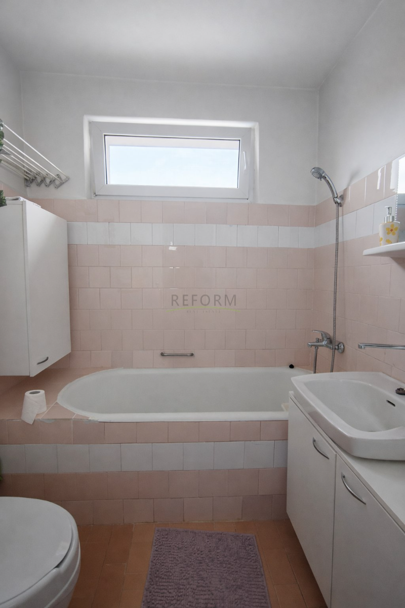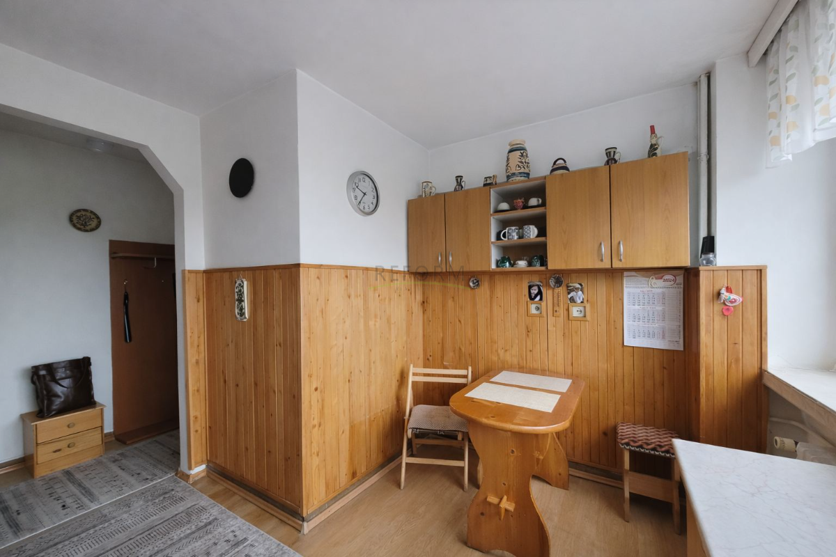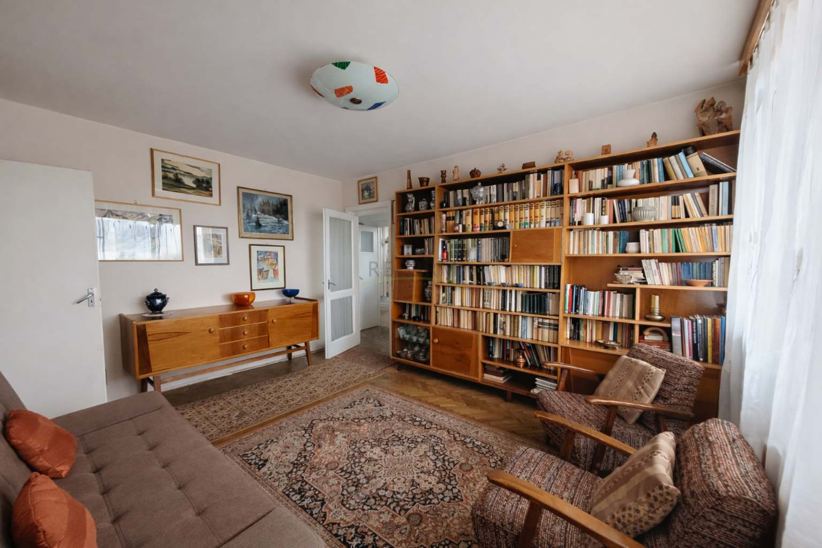 Az elosztás praktikus: átjárós nappali, két különnyíló hálószoba, tágas konyha, káddal ellátott fürdőszoba, kamra és előszobai tároló.