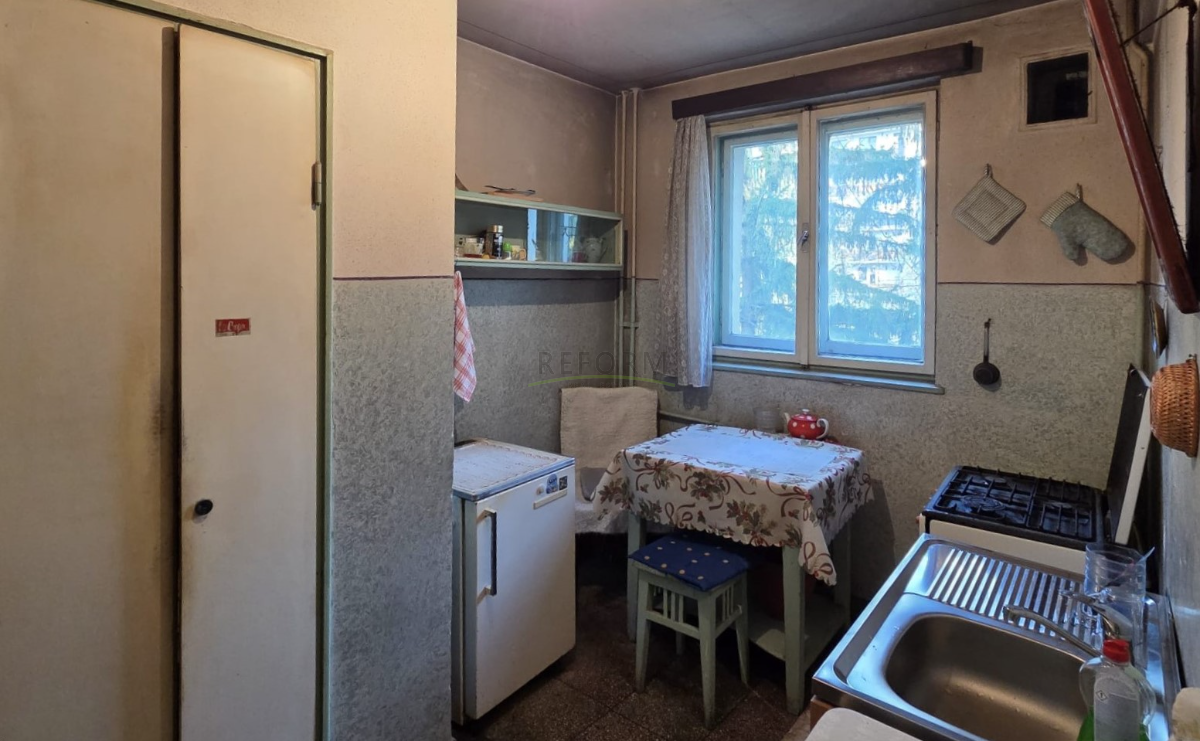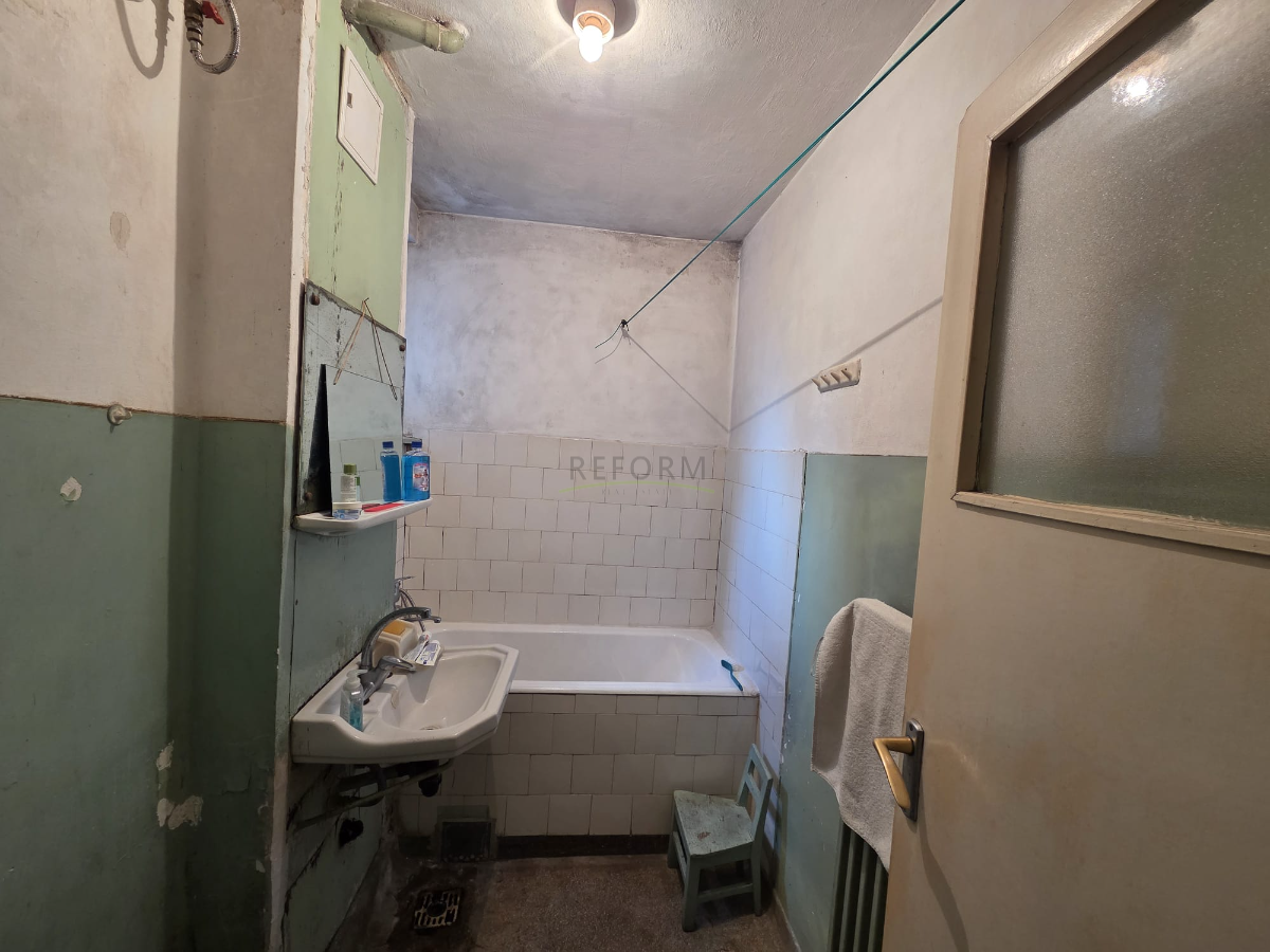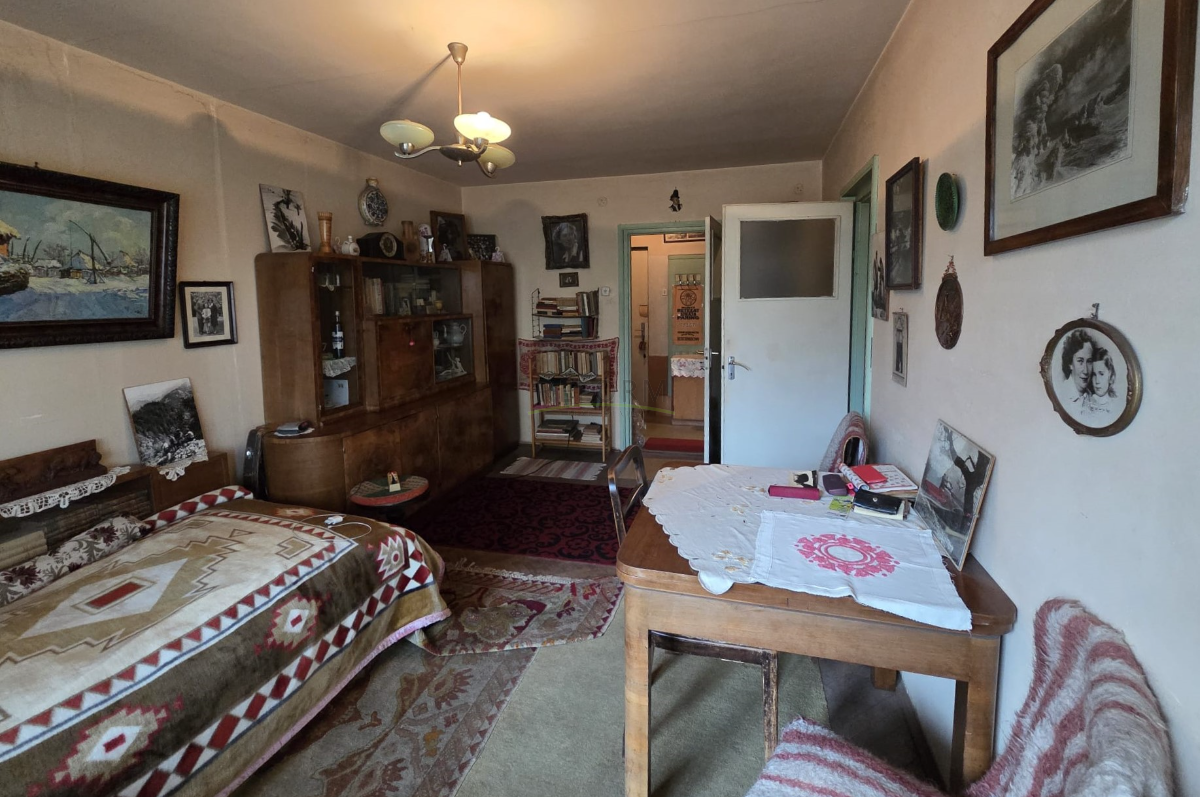 Apartamentul dispune de finisaje clasice, pardoseală din lemn masiv și necesită renovare, oferind posibilitatea de a fi personalizat după propriul gust.