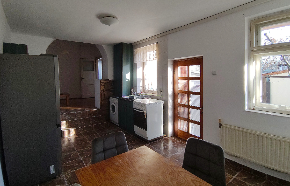 3 camere decomandate, bucătărie separată cu sufragerie și acces direct în curte, baie la parter.