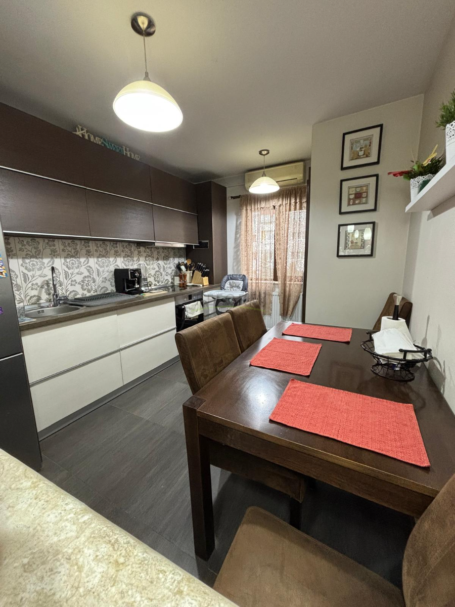 Apartamentul deține finisaje moderne, complet renovat instalații electrice și sanitare noi, centrală termică, geamuri termopan, complet mobilat.