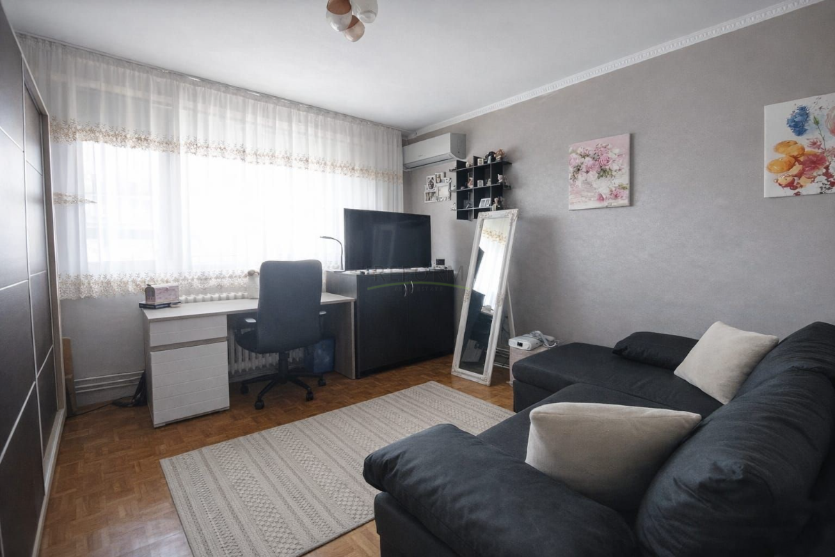 Orientarea apartamentului este vestică. Compartimentarea acestuia este: hol, bucătărie cu cămară, cameră de zi și balcon deschis cu vedere panramică , dormitor, baie cu geam și cabină de duș. Apartamentul se vinde mobilat, finisat având geamuri termopan, și centrală termică proprie, iar in dormitor aer condiționat.