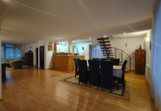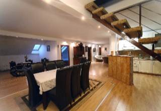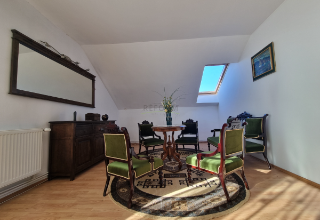 A lakás a 2005-ben épült, mindössze 4 lakásos kis társasház 1 emeletén található és két szinten helyezkedik el – az első emeleten és a manzárdrészben, belső lépcsővel összekötve.