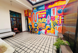 -egy nagy terasz, két erkély és hozzáférés az épület mögötti kerthez.