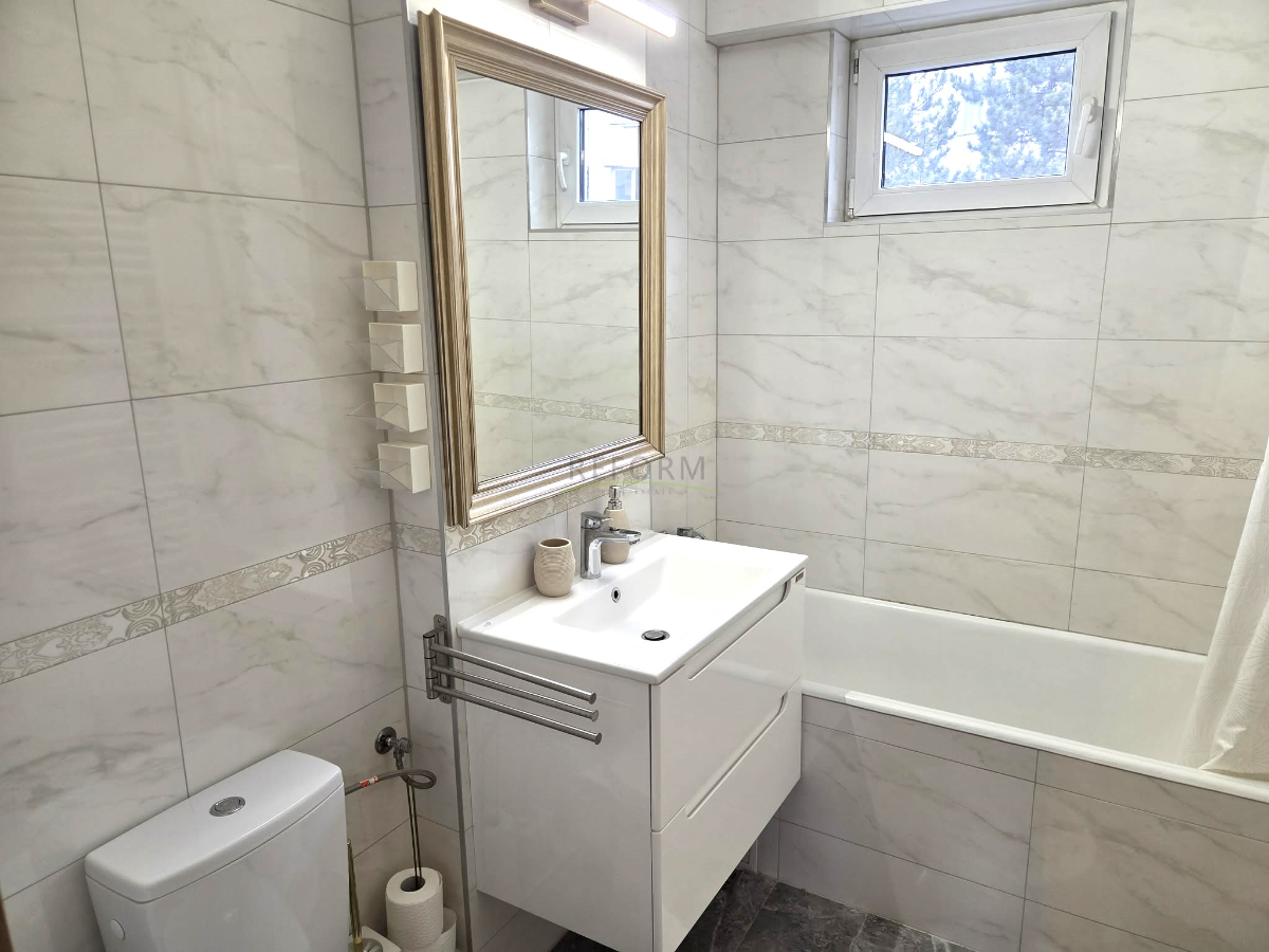 A lakás modern kivitelezésű, új bútorokkal és háztartésigépekkel, központi fűtéssel és dupla üvegezéssel rendelkezik.