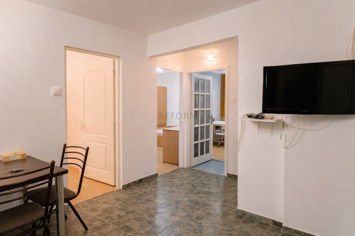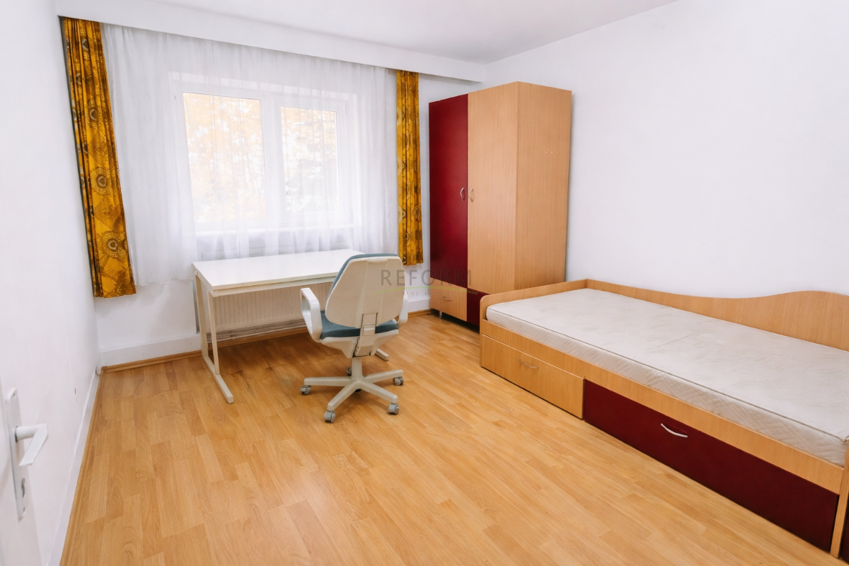 Felosztása: előszoba, konyha, 3 szoba, fürdőszoba ablakkal és zárt erkéllyel.A lakás decens burkolatokkal, dupla üvegezéssel és központi fűtéssel rendelkezik.