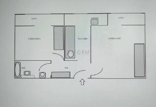 Felosztása: előszoba, konyha kamrával, 2 különálló szoba, mindegyikhez erkely tartozik és fürdőszoba.