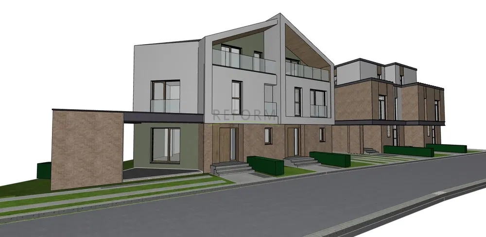 Eladó egy modern kétszintes ikerház Kolozsváron, a Györgyfalvi negyedben, a Sportbázis közvetlen közelében.